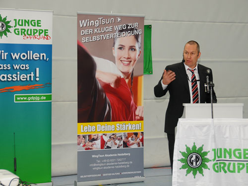 Nach einigen Grußworten von Vertretern aus der Politik, der Polizei , der JUNGEN GRUPPE (GdP) und der EWTO durch DaiSifu Oliver König, referierte der anerkannte Psychologieoberrat a.D. Dr. phil. Uwe Füllgrabe über das Thema „Psychologie der Eigensicherung“.