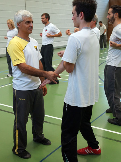 Manch ein Schüler erwartet, dass er auf dem Lehrgang nun alles, was er gelernt hat, vorzeigen darf. Ich sehe mir aber die verschiedenen Inhalte nur stichprobenartig an und mir genügt aufgrund der Erfahrung oft schon ein Blick oder ein kurzes Berühren, um festzustellen, auf welchem Level sich der Schüler bewegt.