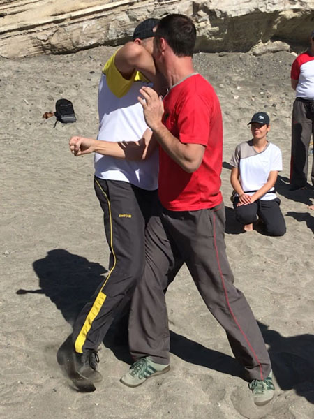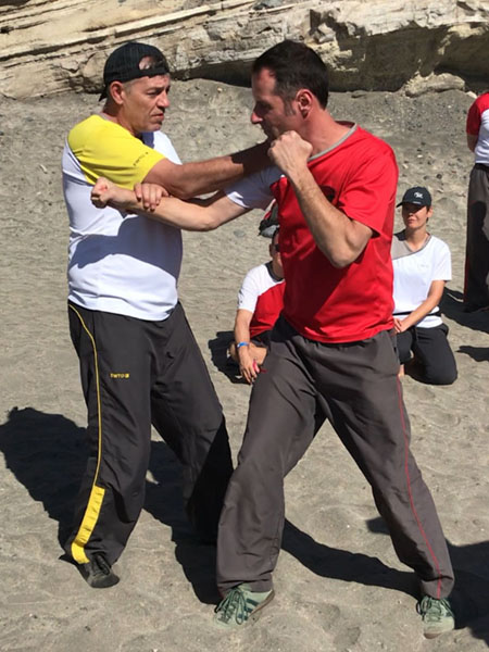 Oft machen WT-ler unter Stress den Fehler, dass sie zu weit nach vorn gehen, denn sie fühlen sich in der ChiSao-Distanz sicher. Aber wenn sie dann zu weit reingehen, sind sie in der Ringer-Distanz, in der ein Spezialist, z.B. im Ringen, besser ist!