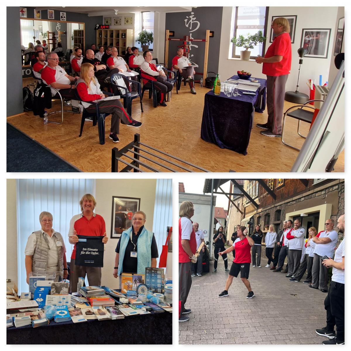Meister Peter Thietje gab in der EWTO-Akademie in Fritzlar mit seiner einzigartigen emotionalen und ausdrucksstarken Art, sein Wissen im Umgang mit Menschen, die Opfer einer Gewalttat geworden sind weiter. Dabei handelt es sich um Opfer von Straftaten, wie zum Beispiel Raub, Mobbing, Körperverletzung, Stalking, Sexueller Missbrauch usw.. Diese leiden oft ein Leben lang unter dem erlittenen Trauma, und finden ohne professionelle Hilfe nur schwer aus der Angstspirale, die ihr Leben beinträchtigt.