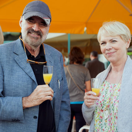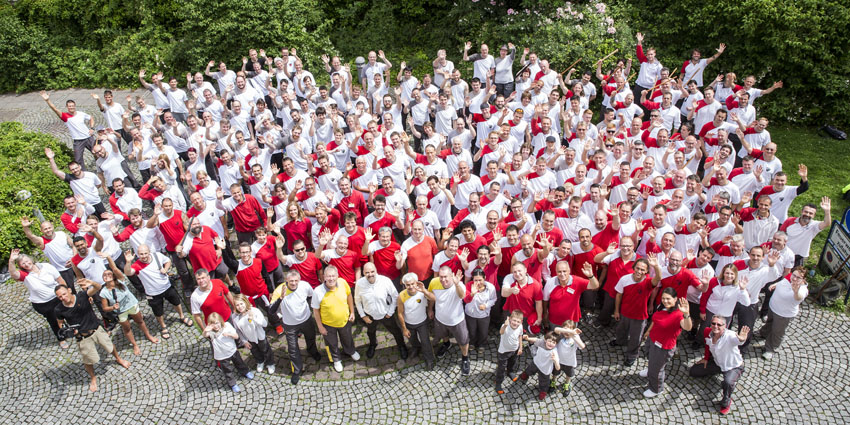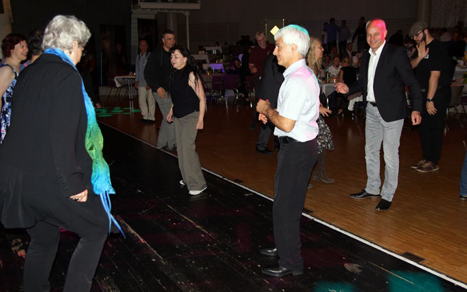 Nach einem kurzen Umbau übernahm danach die Firma Eventpartner das Zepter und sorgte durch mitreißende Musik, dass es die Gäste der Abendveranstaltung nicht mehr auf den Stühlen hielt. Trotz des bewegungsreichen Tages wurde bis in die frühen Morgenstunden fleißig das Tanzbein geschwungen. Zwischendrin gab es nur kleine Päuschen, um kurz in die Fotobox zu verschwinden. Allein oder mit Freunden entstanden dort mit bereitgestellten Accessoires lustige Erinnerungsfotos.
