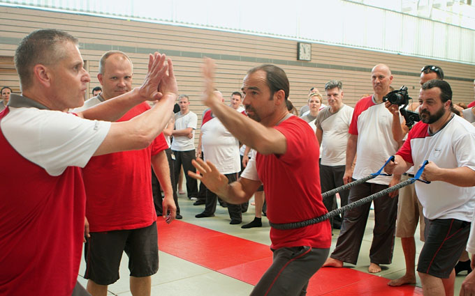 So war es in diesem Jahr für angehende - und Meister zum ersten Mal auf dem Internationalen Lehrgang möglich, ihr Langstock- und Doppelmesserprogramm zu trainieren und sich weitere wertvolle Tipps zu holen. Bislang war dies dem Waffenlehrgang am Ostermontag und Kleingruppen oder Privatstunden vorbehalten.
