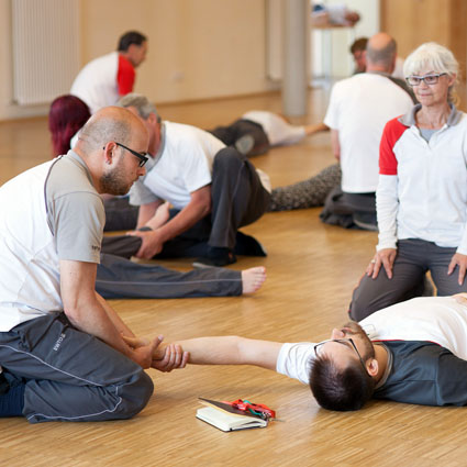 Wer noch weiter auf Entdeckungstour durch seinen Körper und Geist gehen wollte, hatte dazu beim Schnupperkursus für SensoryAwareness mit Sascha Rimasch Gelegenheit. Es ist immer wieder verblüffend, was es selbst in der Kürze der Zeit schon zu entdecken gibt und wie erfrischend dies sein kann. Im Laufe der Jahre ist die WingTsun-Fan-Gemeinde für SensoryAwareness stetig gewachsen.