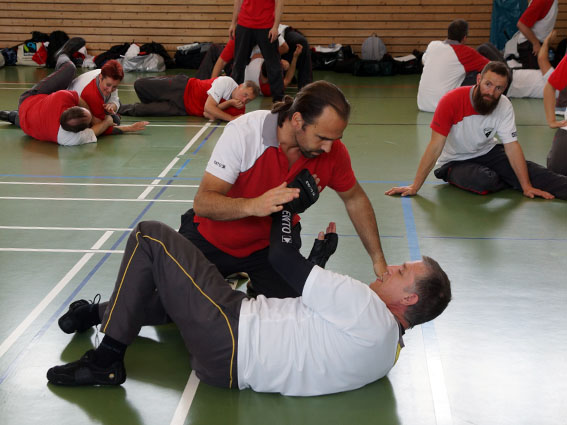 Natürlich wurde darüber das klassische WingTsun nicht vergessen. Großmeister Giuseppe Schembri verblüffte die Teilnehmer/innen immer wieder mit Tipps und Hinweisen, die er sich im Laufe seiner langjährigen WingTsun-Karriere erarbeitet hat. Und die er heute mit den neuesten wissenschaftlichen Erkenntnissen untermauert. Er machte deutlich, dass es selbst in kleinsten Bewegungseinheiten unheimlich viel zu entdecken und lernen gibt. Für GM Schembri ist WingTsun über die reine Selbstverteidigung hinaus als Kampfkunst in jedem Fall ein Lifetime-Sport – im Sinne von lebenslang möglicher körperlicher Aktivität! Eine Entdeckungsreise, die verspricht, nie langweilig zu werden.