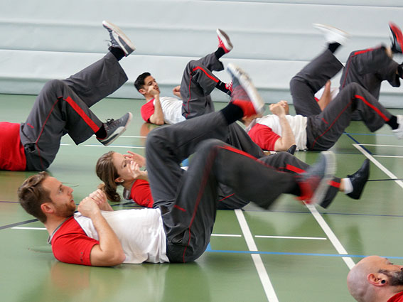 Die Fähigkeit zur effizienten Selbstverteidigung von Menschen jeden Alters ohne besondere Vorkenntnisse so schnell wie möglich zu steigern – das ist seit jeher ein zentrales Anliegen des WingTsun-Unterrichts in der EWTO. Die Großmeister befassen sich ständig mit dem Thema, das man in einem Satz zusammenfassen könnte: „Selbstverteidigung – streetwise und in kurzer Zeit erlernbar“. Als „BlitzDefence“ ist das spezialisierte Unterrichtsprogramm für Selbstverteidigung seit beinahe zwei Jahrzehnten weit über die Grenzen der EWTO hinaus bekannt und setzt Maßstäbe in diesem Bereich. Das „BlitzDefence“-Programm wird fortwährend weiterentwickelt und sowohl an geänderte SV-Anforderungen als auch an neueste Erkenntnissen aus der Trainingslehre angepasst. Die Großmeister Oliver König und Thomas Schrön hatten es sich während dieses Leadership-Lehrgangs zur Aufgabe gemacht, die anwesenden Schulleiter auf den aktuellsten Stand der „BlitzDefence“-Programme zu bringen.