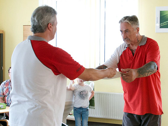 Bei meiner Prüfung zum BlitzFight-Ausbilder 2017 kontrolliert GM Schrön genau, ob meine Fähigkeiten dafür ausreichen.