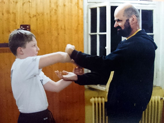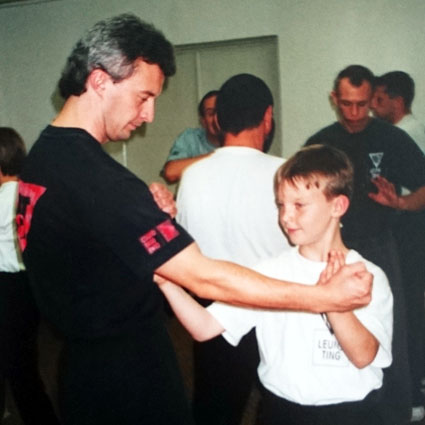Ich begann schon früh mit dem WingTsun-Training. Laut Aussagen meiner Mutter lernte ich schon in ihrem Bauch die ersten Grundtechniken. Fauststöße und Ellbogen waren meine Spezialität.