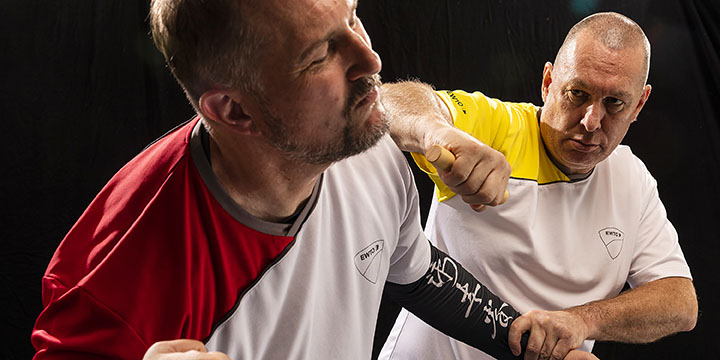 In unseren WingTsun-Schülergrad-Programmen lernt der Schüler gleich zu Beginn das Blitz-Programm. Blitz 1 bis 4 wurden anfangs aus den Waffenprogrammen entwickelt. Es ist also nicht schwer, statt nur der Hand eine Behelfswaffe einzusetzen.